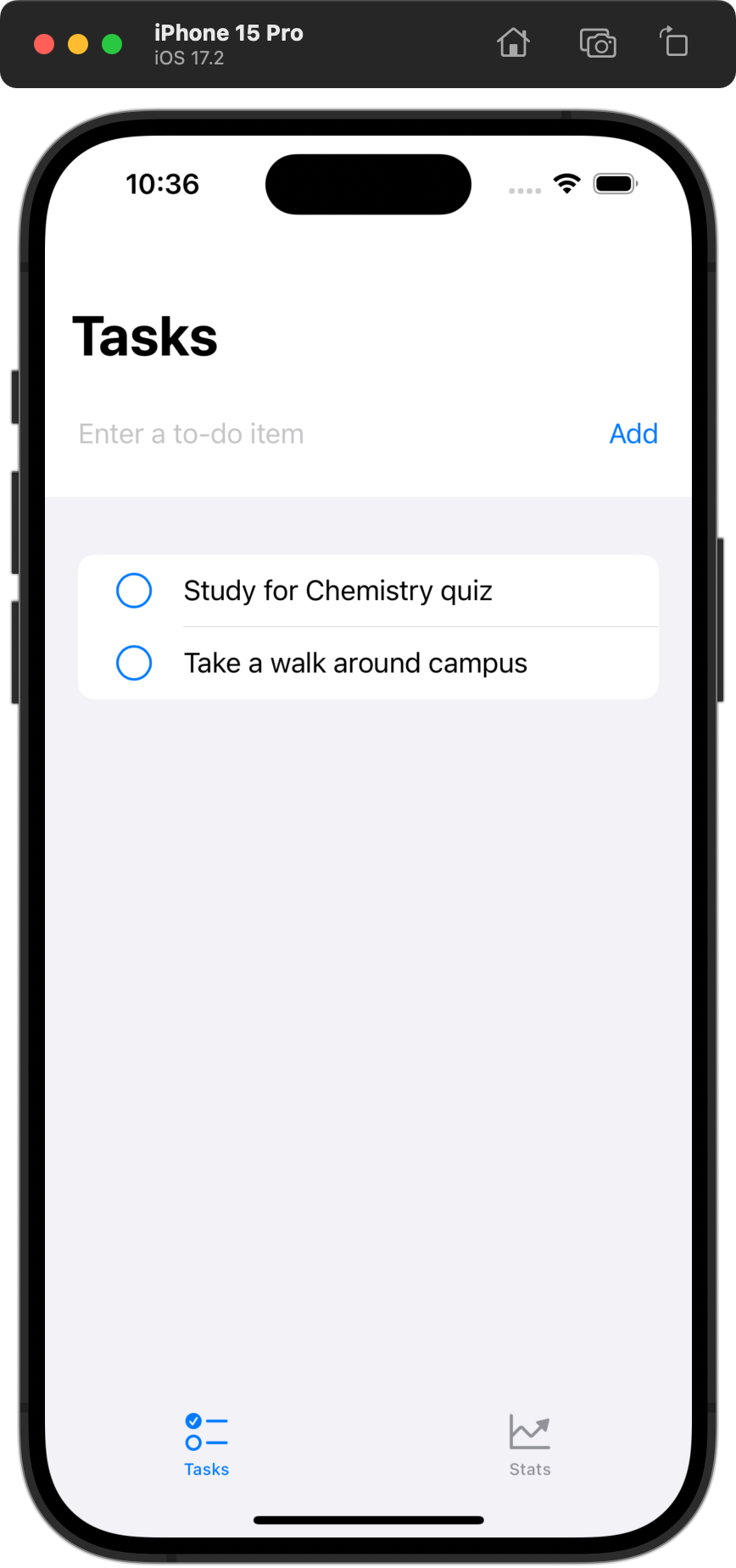 TodoItemstructure conform to theIdentifiableprotocol so that we can use an array of instances of this structure in a scrollableListstructure in our user interface.