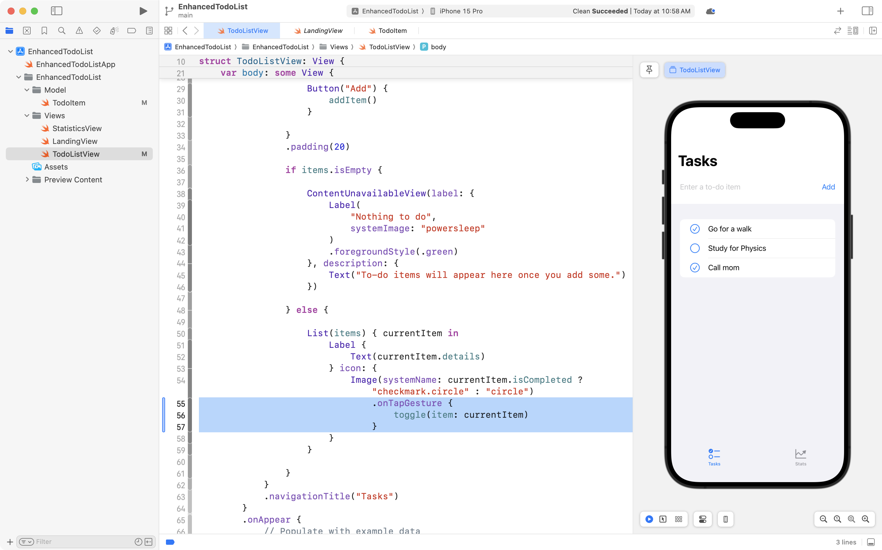 SwiftUI will take care of the remaining details for us – automatically updating the user interface when properties of an instance of TodoListItem are changed.