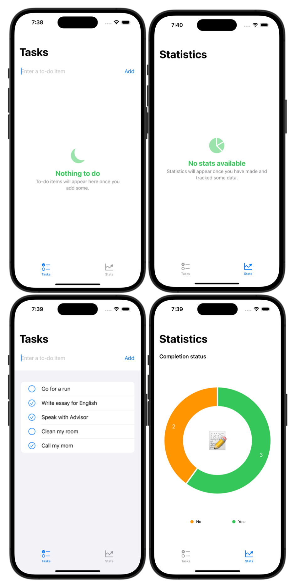 LandingView will serve as a tab view for navigating between the to-do list and the statistics view.
