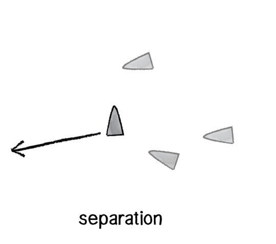1. Separation (also known as “avoidance”) – steer to avoid colliding with your neighbours: