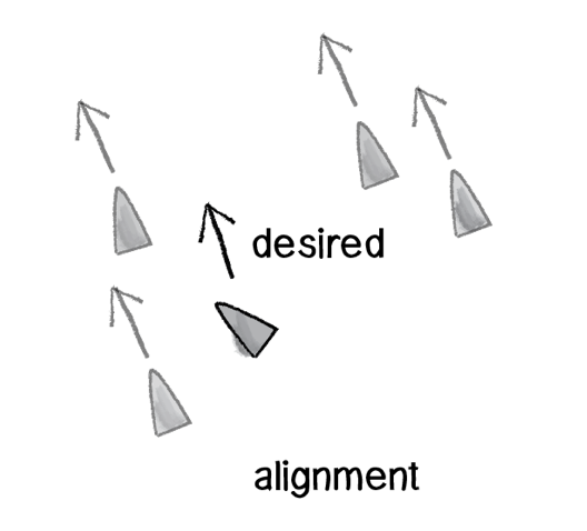 2. Alignment (also known as “copy”) – steer in the same direction as your neighbours: