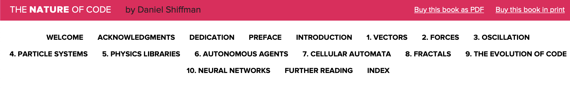 Some of the information presented earlier, the images, and the video, are excerpts from The Nature of Code, by Daniel Shiffman, which is an amazing book about how to use Javascript to simulate natural systems.