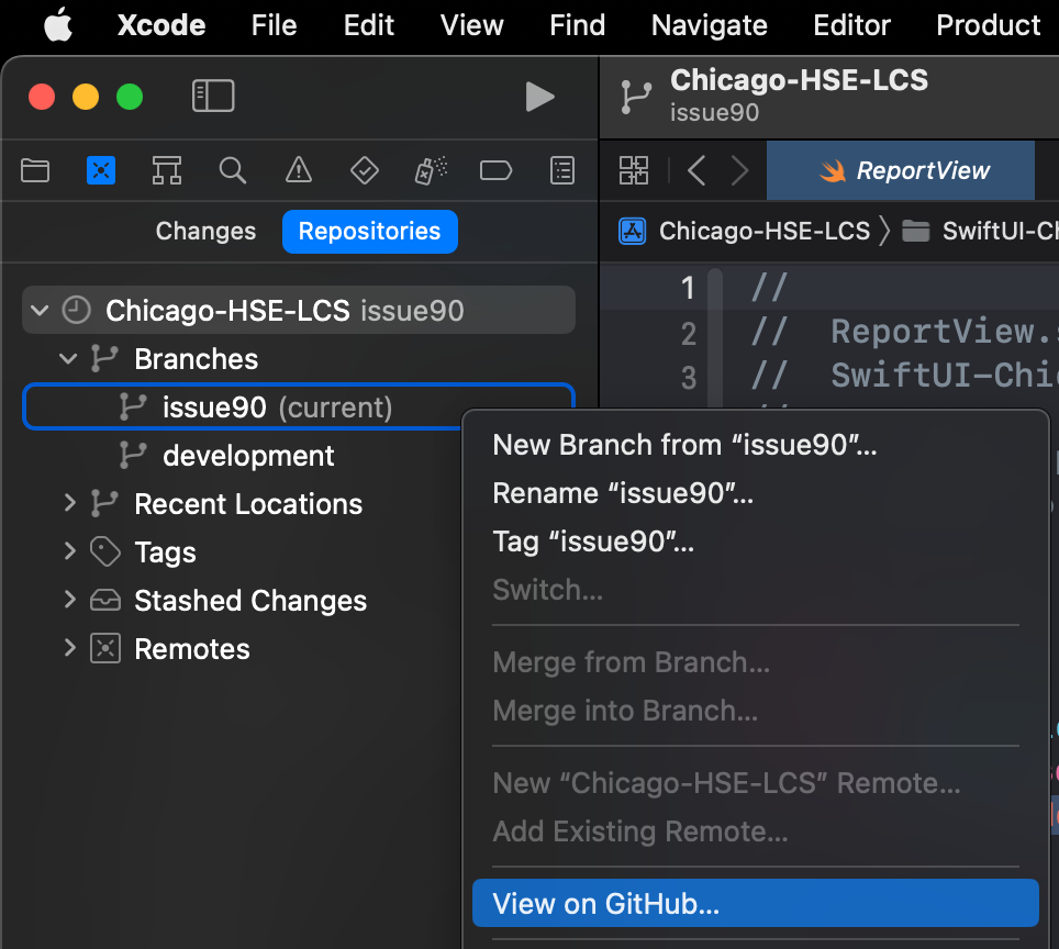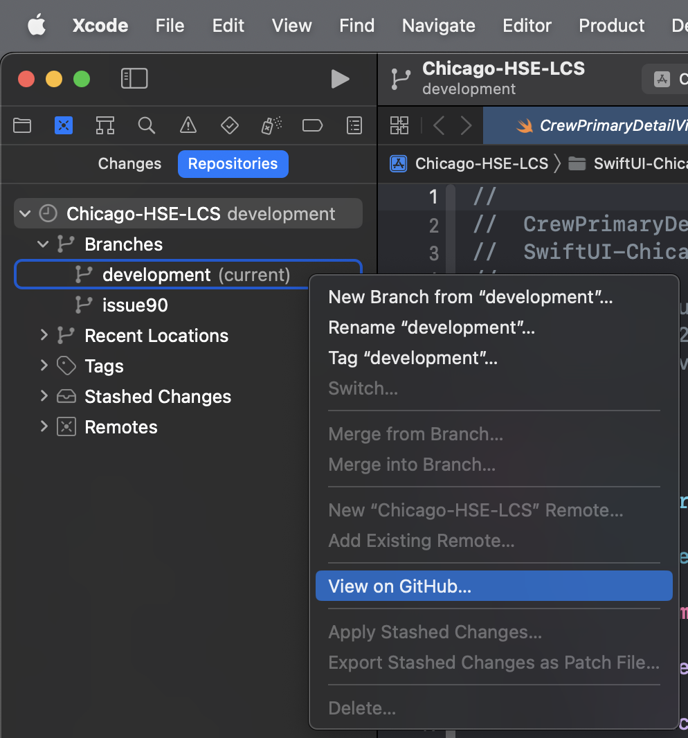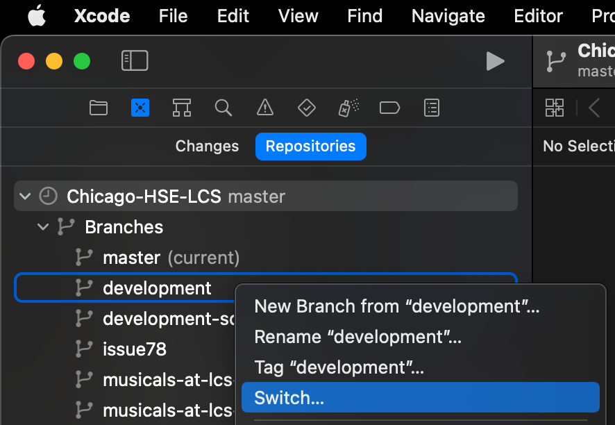 Back in Xcode, pull from your fork’s remote to get latest changes on the