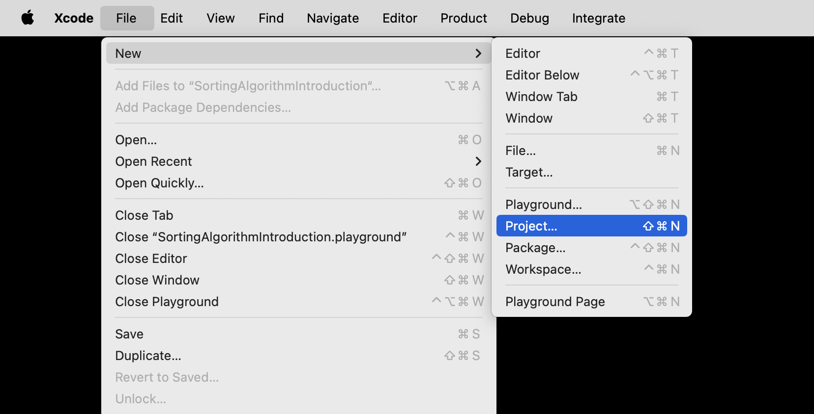 From the menu bar at top left, choose File > New > Project…: